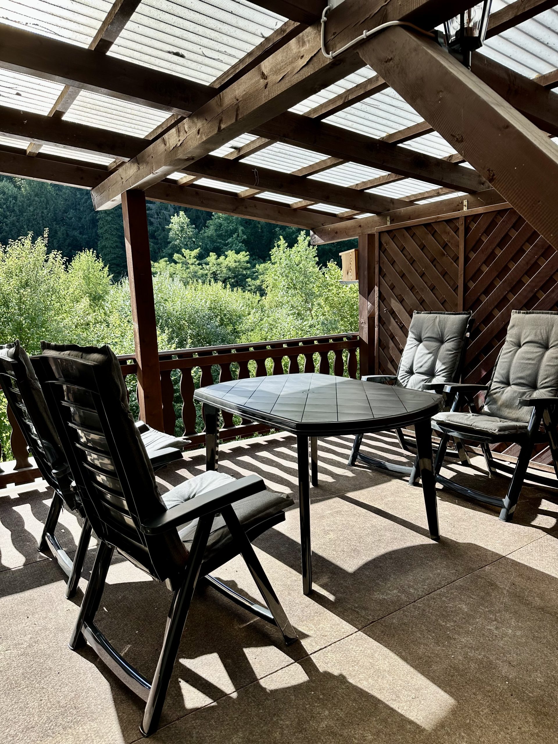 Das Haus wurde 2024/25 umfassend renoviert und liebevoll eingerichtet – es fehlt an nichts für einen erholsamen Aufenthalt. Ein überdachter Freisitz lädt bei jedem Wetter zum Verweilen im Freien ein. Fahrräder können sicher in der Garage untergestellt werden.