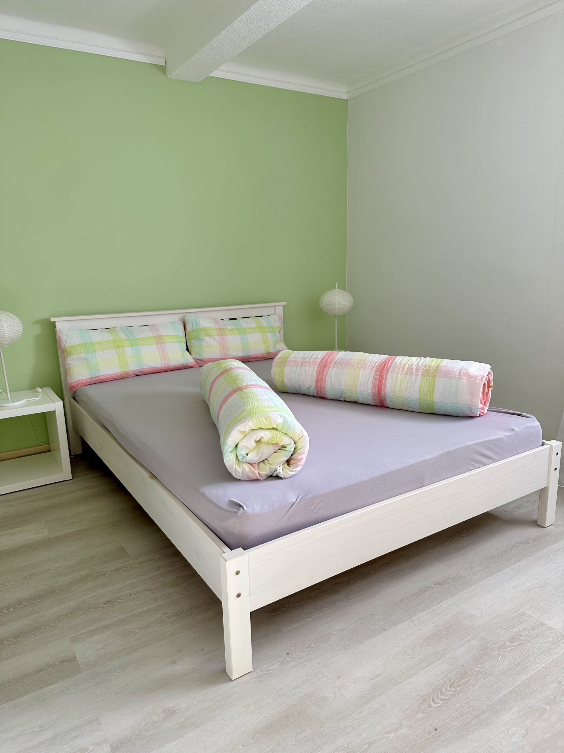 Zur Verfügung stehen ein gemütliches Wohnzimmer, eine neue, gut ausgestattete Küche mit Essecke (Spülmaschine, Induktionsfeld, Backofen, Kühl-/Gefrierkombination, Kaffeemaschine, Toaster, Eierkocher, Wasserkocher sowie eine Auswahl an Gewürzen), ein neues, großzügiges Badezimmer mit begehbarer Dusche, zwei Schlafzimmer sowie ein Durchgangszimmer, WLAN und eine Waschmaschine.